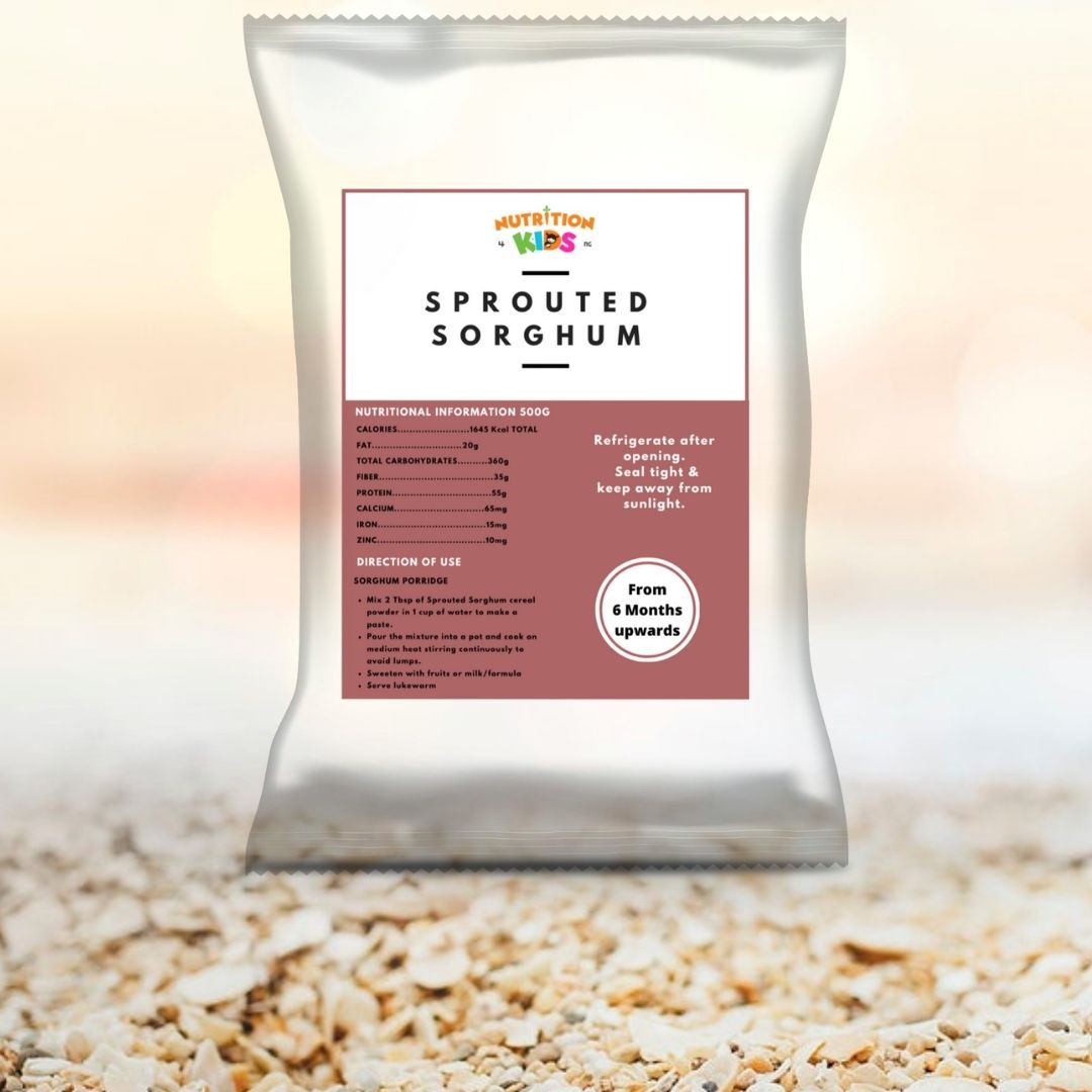 Sprouted sorghum is a natural, gluten-free grain that has been germinated to enhance its nutritional profile. It is rich in B vitamins, iron, and antioxidants, and safe for babies from 6 months once finely milled and cooked thoroughly.
